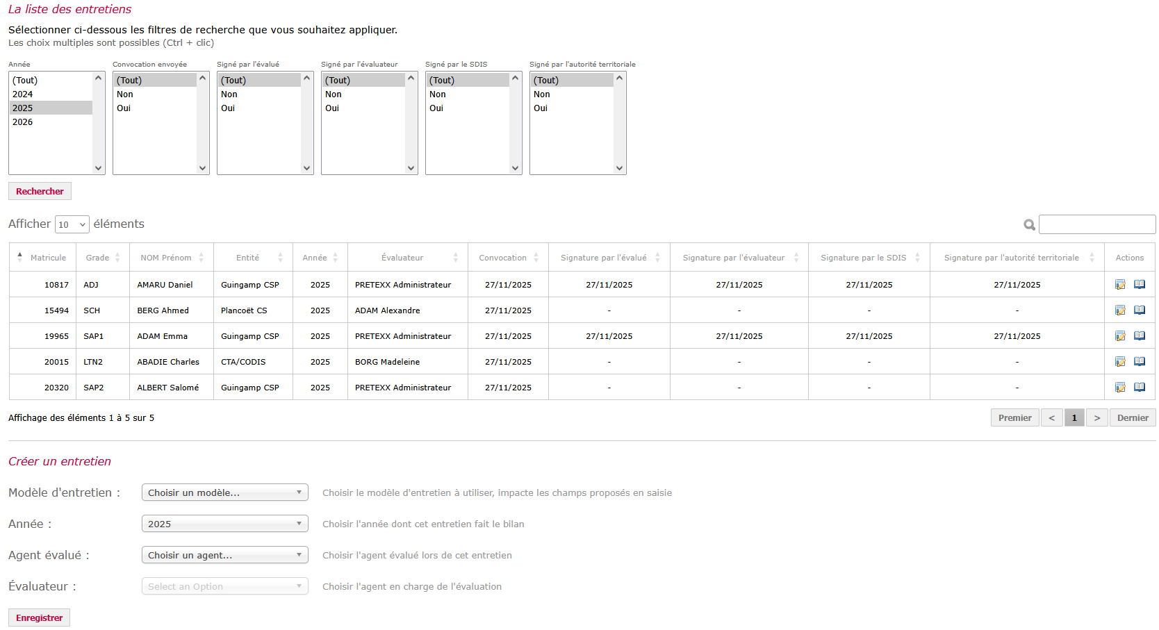 - de vérifier le degré de signature (évalué, évaluateur, SDIS, autorité territoriale) des entretiens réalisés.