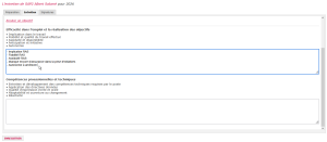 - une zone permettant d’ajouter ou de supprimer les objectifs pour l’année à venir,