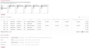 Filtres de recherche et tableau des résultats